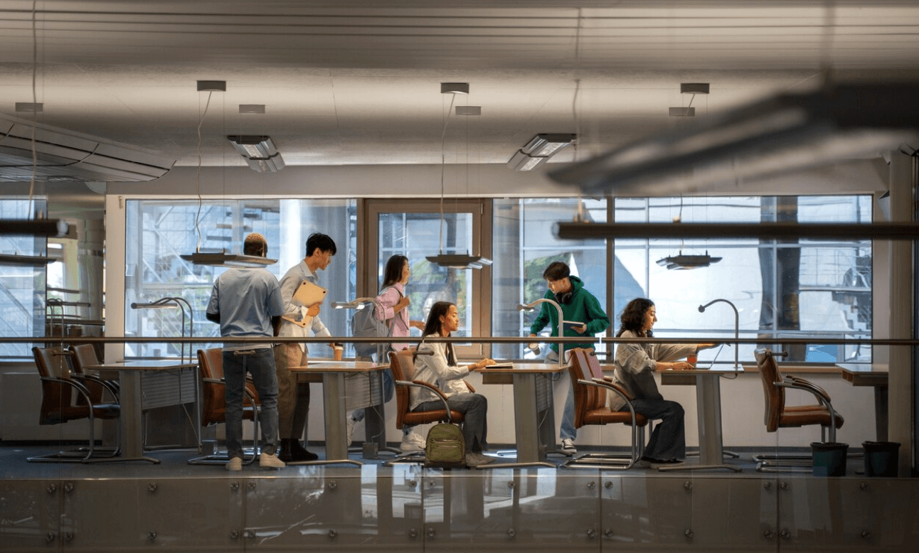 Sunlit is a modern co-working loft with focus rooms, team tables, and meeting pods. The space is designed for deep work with excellent acoustics.